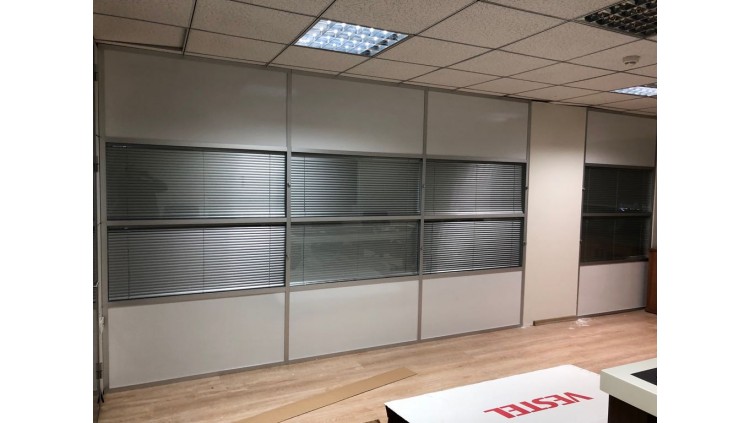 yarı panel ve tam camlı,çift cam jaluzili ofis bölme sistemidir